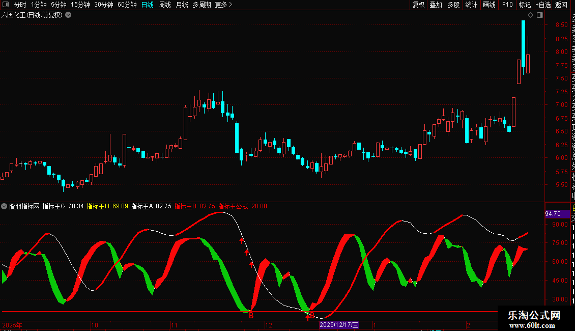指标王B:IF(指标王A>REF(指标王A,1),指标王A,DRAWNULL),COLORRED,LINETHICK3;