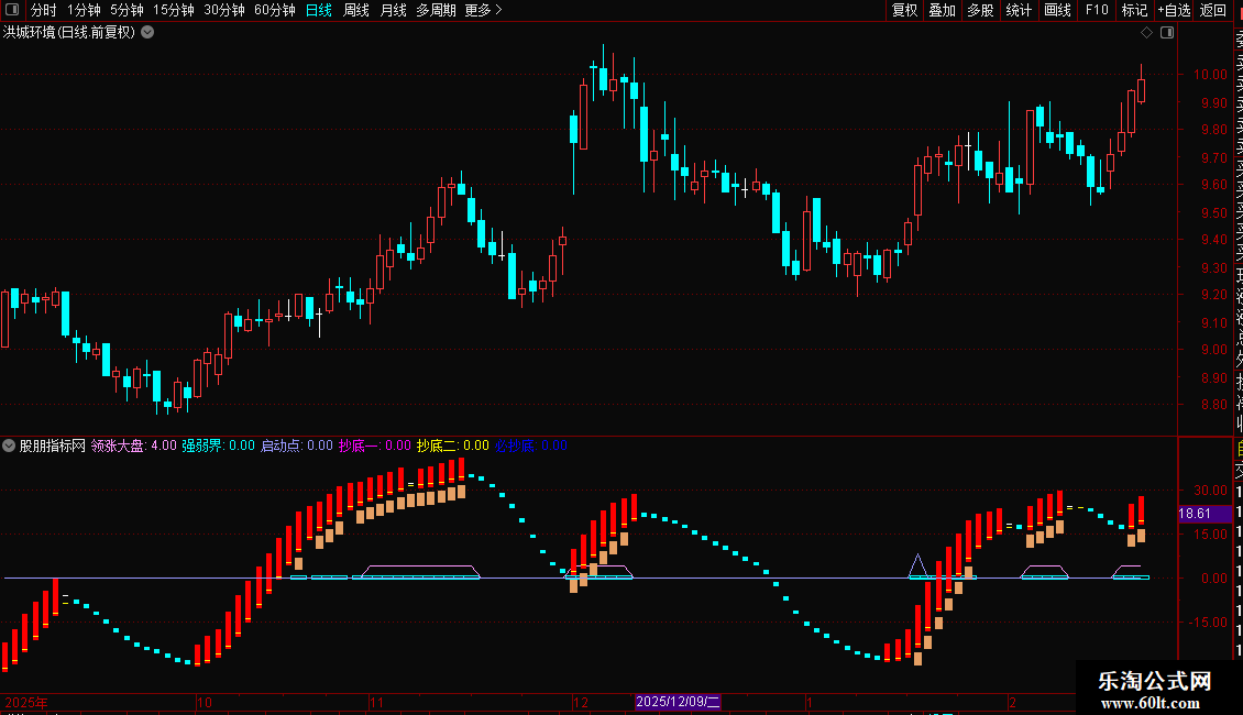 领涨大盘:IF(均五升 AND 均十升 AND 中线趋势升 AND 领涨,4,0),COLORFF99FF;