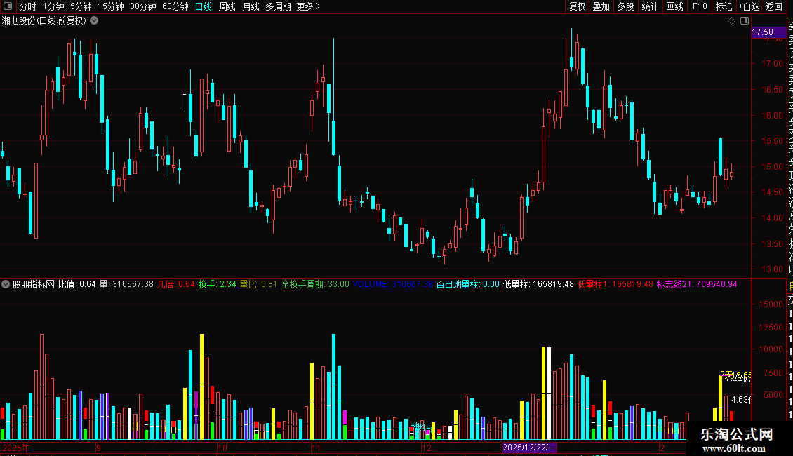 量比:VOL/REF(MA(VOL,5),1),NODRAW,COLORBROWN;
