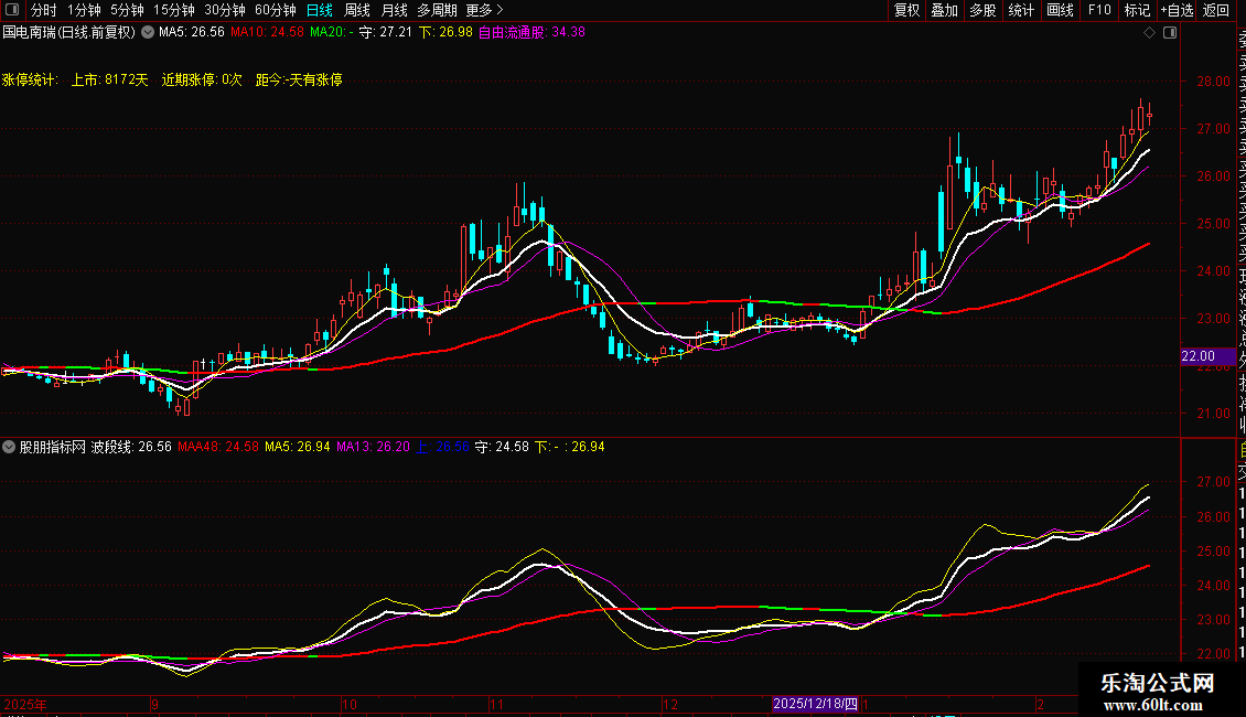 波段线:(MA(CLOSE,3)+MA(CLOSE,6)+MA(CLOSE,12)+MA(CLOSE,24))/4,COLORWHITE,LINETHICK2;