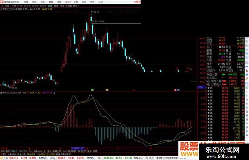 4.分析MACD柱状线,由红变绿(正变负),卖出信号;由绿变红,买入信号