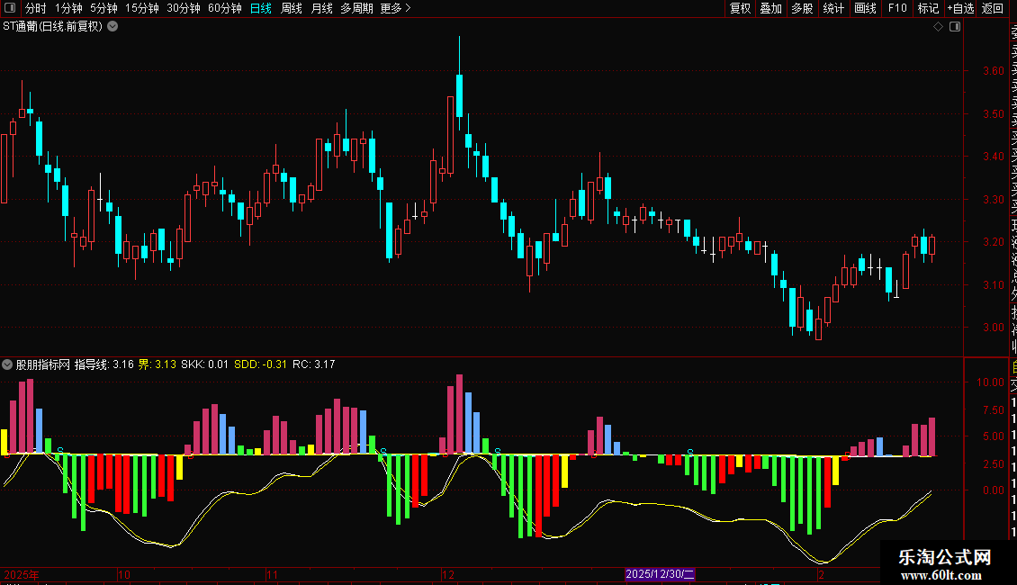 STICKLINE(DK<0 AND 多方<空方 AND SK<SD,RC,RC+DK,1,0),COLOR33FF33;