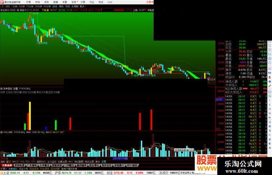 DRAWTEXT_FIX(ISLASTBAR,0,0,0,'说明: 红色柱为吸货量,绿色为出货量,黄色为天量,蓝色为地量'),COLORGRAY;