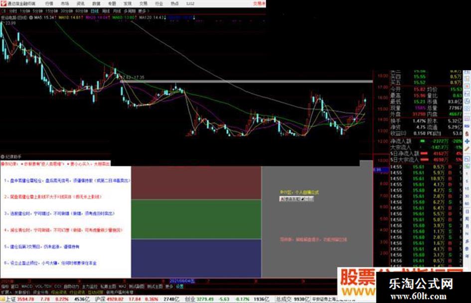 DRAWTEXT_FIX(ISLAstBAR,0,0.01,0,'操作纪律:★ 炒股要有“逆人类思维”;★ 要小心买入,大胆卖出;★ 无明确信号时,不可轻易介入'),COLORRED;