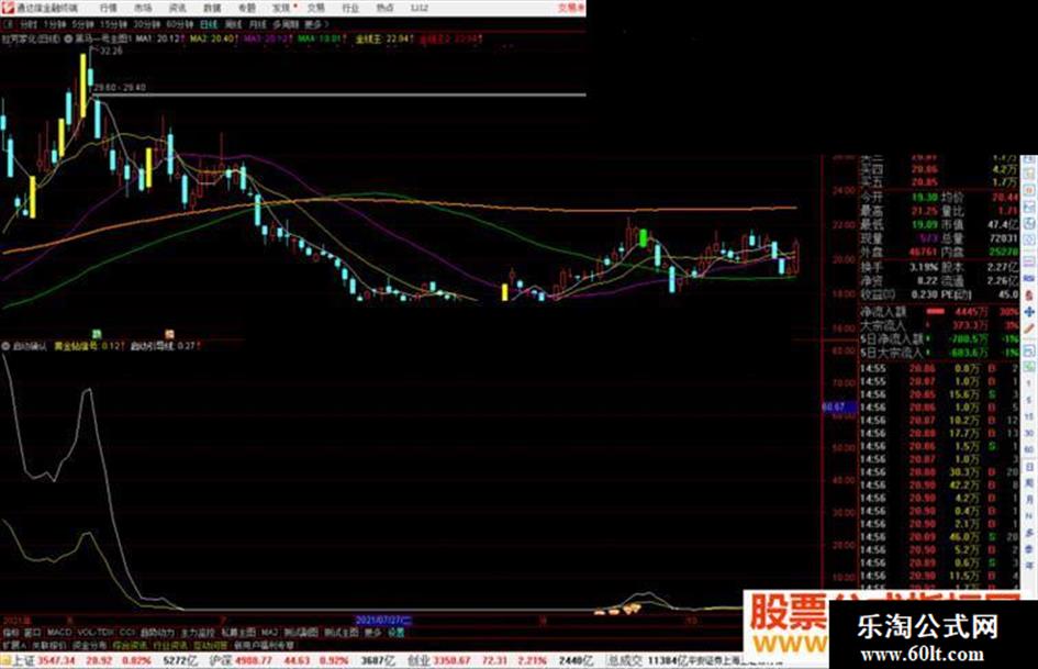黄金钻信号:IF(A<0,0,A*A),LINETHICK1,COLORYELLOW;