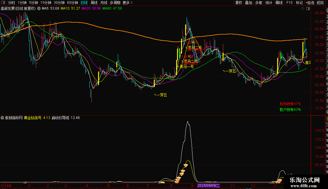 DRAWTEXT(黑马二号,L*0.95,'↖黑马二号'),COLORYELLOW;