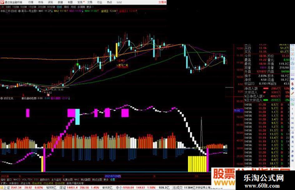 ZJ1:=DMA((H+L+C*2)/4,0.9); ZJ2:=V/((H-L)*2-ABS(C-O));
