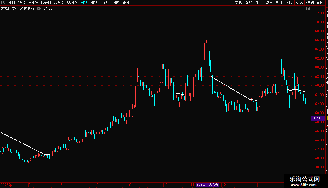 DRAWLINE(C>=趋势线,趋势线,C<趋势线,趋势线,0),COLORWHITE,LINETHICK2;
