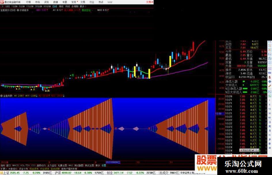 MACD底背离:STICKLINE(REF(CLOSE,A1+1)>CLOSE AND VAR1>REF(VAR1,A1+1) AND CROSS(VAR1,VAR2),(-25),25,0.00001,0),COLORYELLOW;