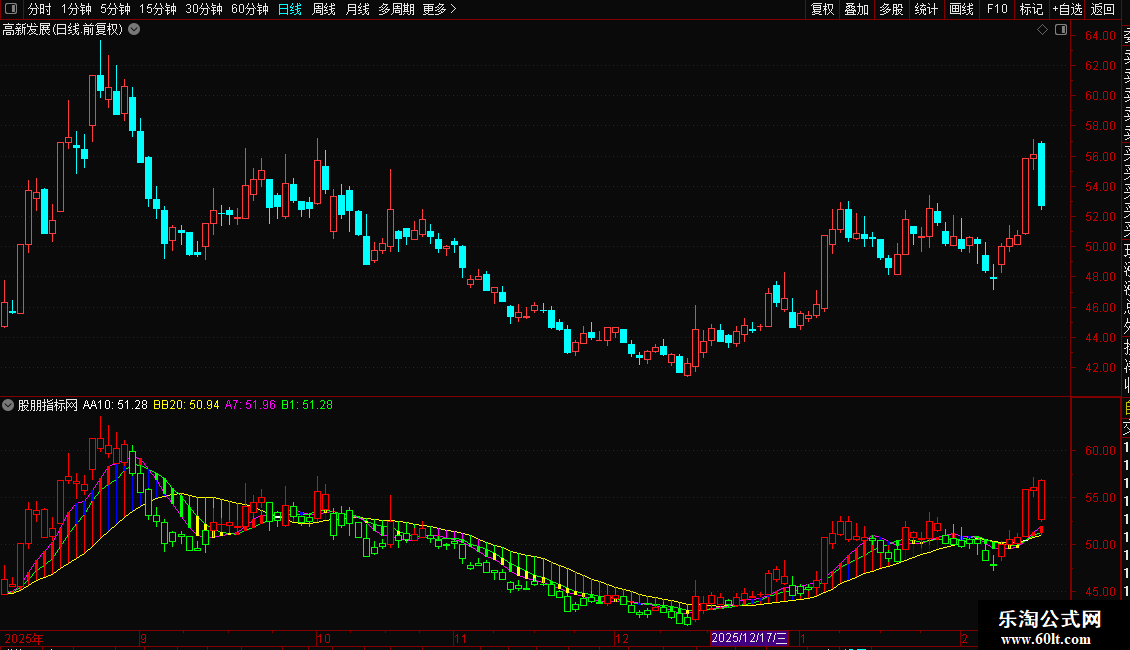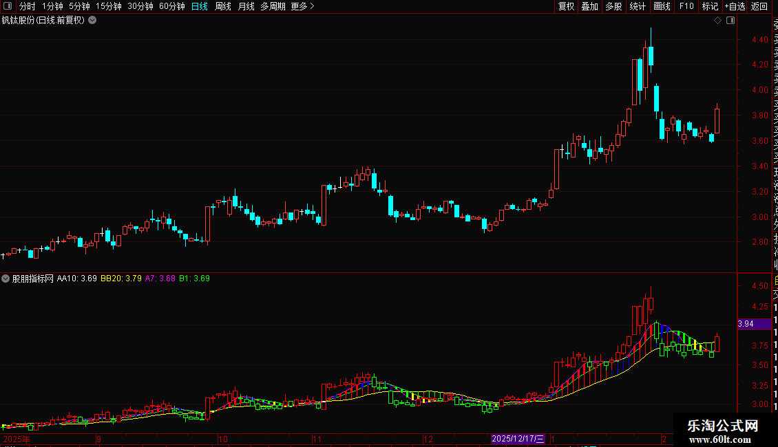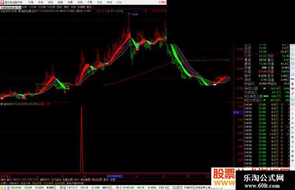3.股价站在30周均线上处于多头位置,量线呈现三线开花的态势;