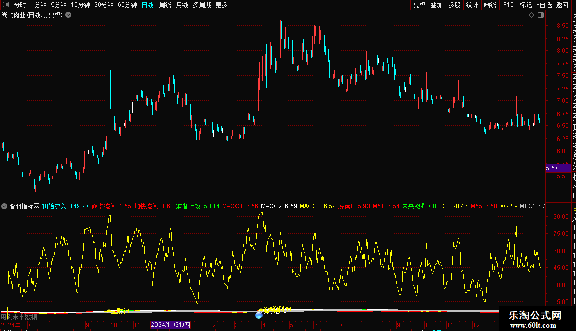 分水岭N1:=IF(MA(CLOSE,100)<BN1,BN1,MA(CLOSE,100)),LINETHICK0;