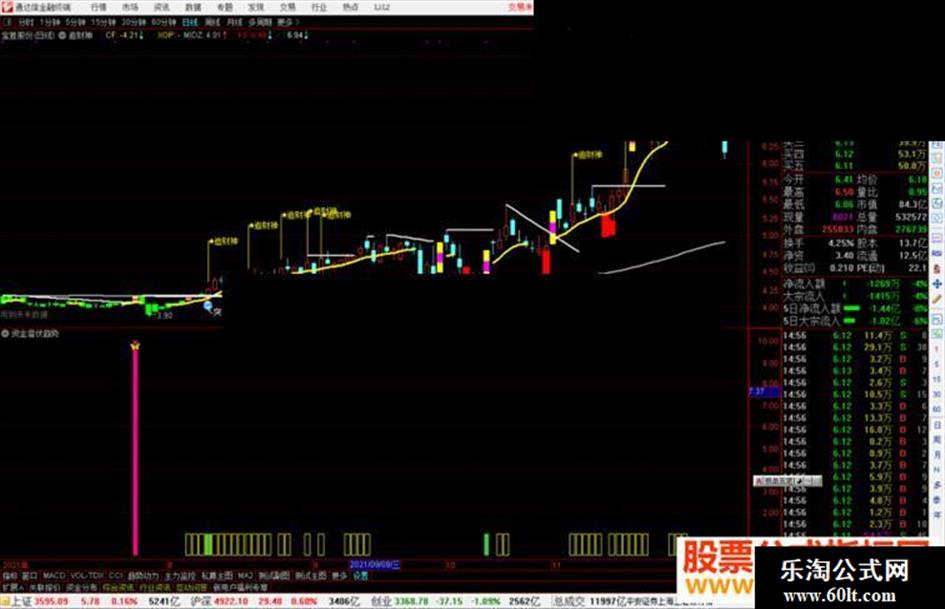 绿色的是相对筹码峰,就是资金在相对时间段集中的地方,黄色的空心柱是趋势相对强势的阶段,那个红色的柱子我就不说了。