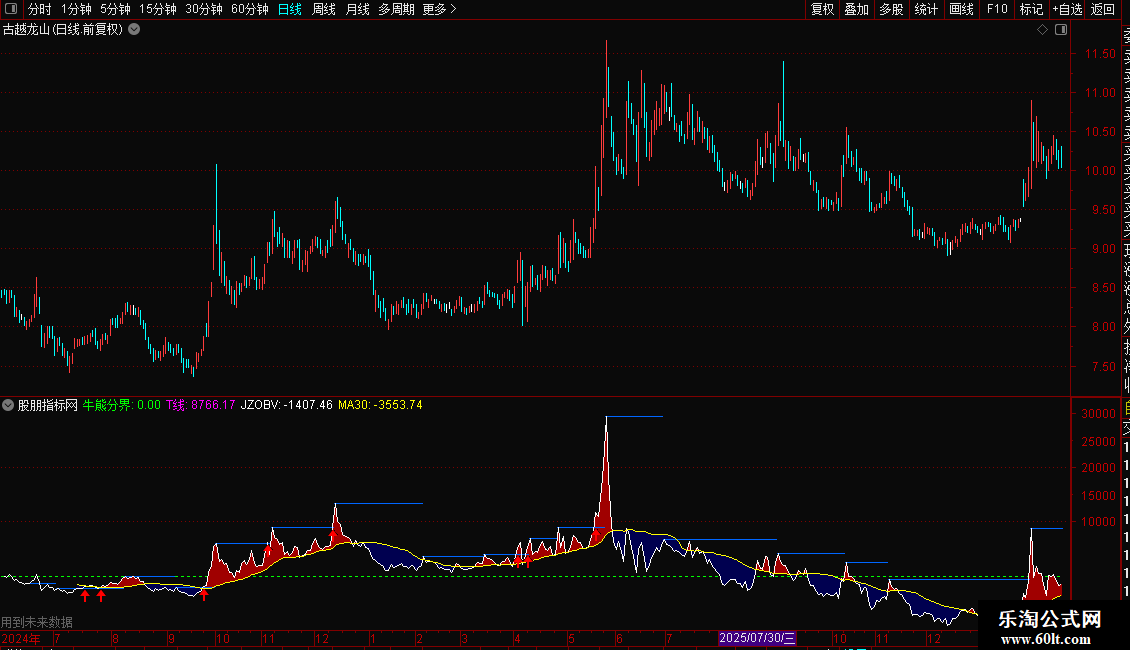 1,0轴是多方市场和空方市场分界线,尽量在 精准OBV为正值时进场交易。