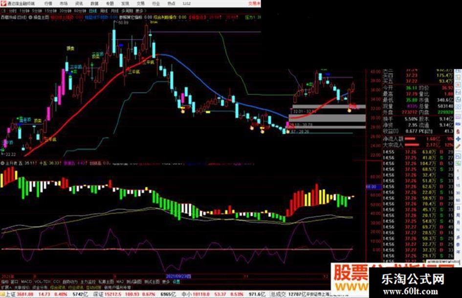 可以保证指标绝对无未来函数,请放心使用。用此指标可以看出个股目前有没有主升浪(顶部显示主升浪为0,无,等于1或大于1,有),是强势还是弱势,一目了然。指标的上面柱体看资金,红、黄柱在趋势线之上,资金流入,股价上涨或主升,白、绿柱在趋势线之下,资金流出,股价下跌或回调;下面线条看趋势,黄、白线是5日、15日线,紫色线是涨速线,当紫线上穿并保持在0轴之上,是上升趋势,0轴之上黄白线之下,趋势转强或蓄势,当紫线上穿并保持在黄白线之上时,要特别关注,这是个股加速拉升阶段,我们要选的就是这个阶段。当紫线下穿0轴时,就该离场了。指标的上下两部分是一致的,要对照着看,可以准确地把握每个波段的进出场时机。
