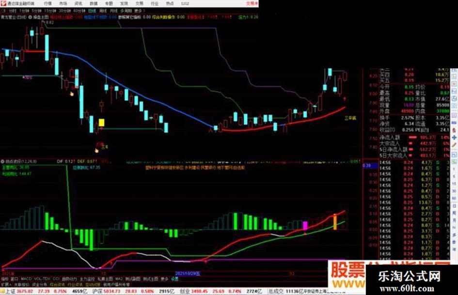 STICKLINE(DIFF<0 AND MACD2>0,0,MACD2,2.8,-1),,COLORCYAN;