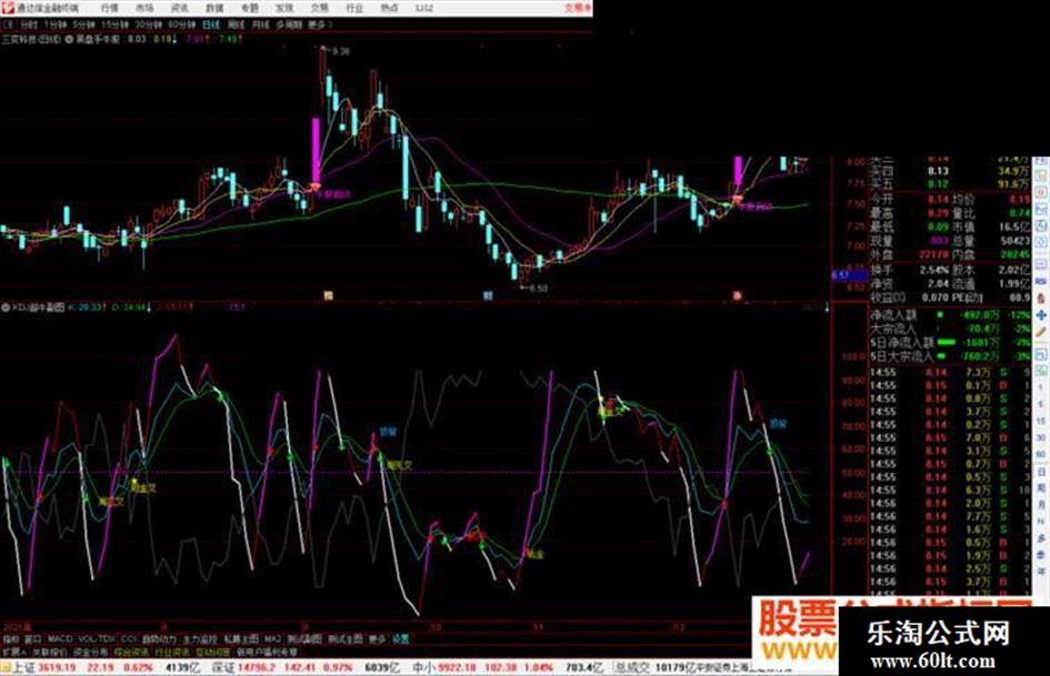 KD的开口:IF(K-D<>0,K-D,0),NODRAW,COLORRED;