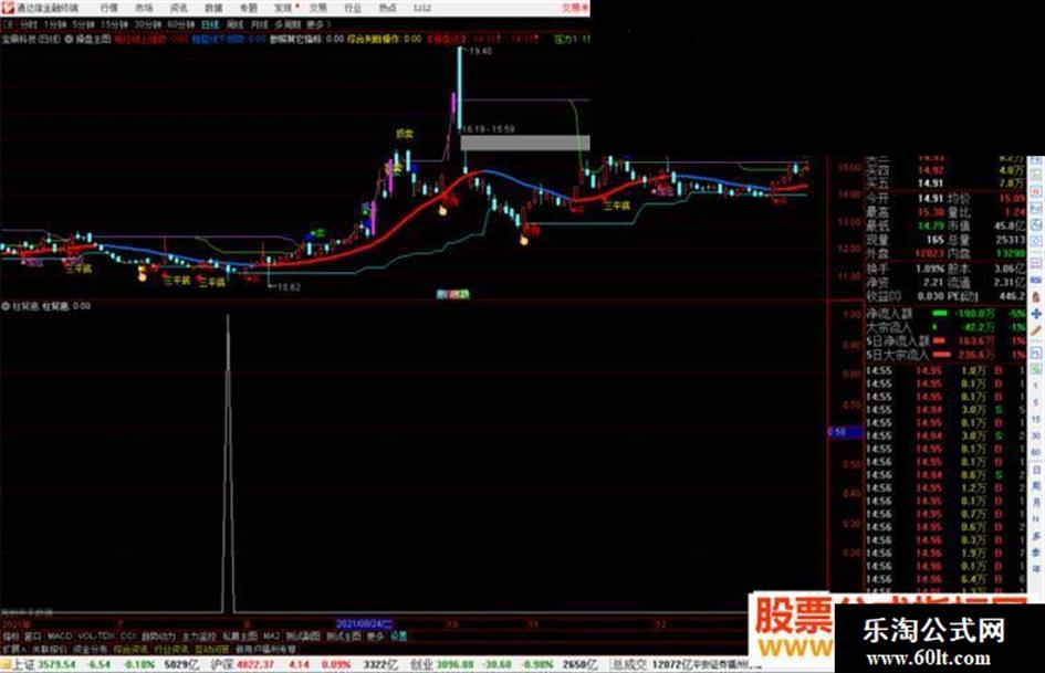 上段:=DRAWLINE(段低,LOW,段高,HIGH,0);