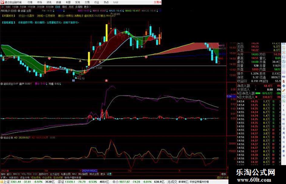 均值:EMA(累计,MIN(10,60)),COLORWHITE;