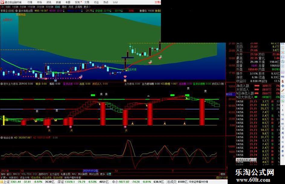 财神:IF(A7,LLV(L,21),DRAWNULL)COLORRED,CIRCLEDOT;