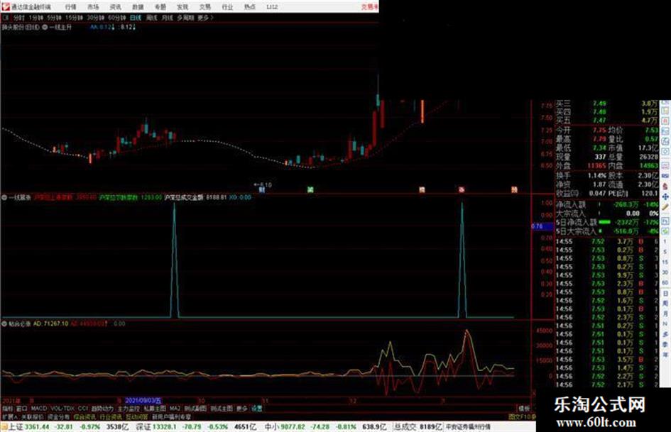 沪深总上涨家数:DYNAINFO(60),NODRAW,COLORRED;