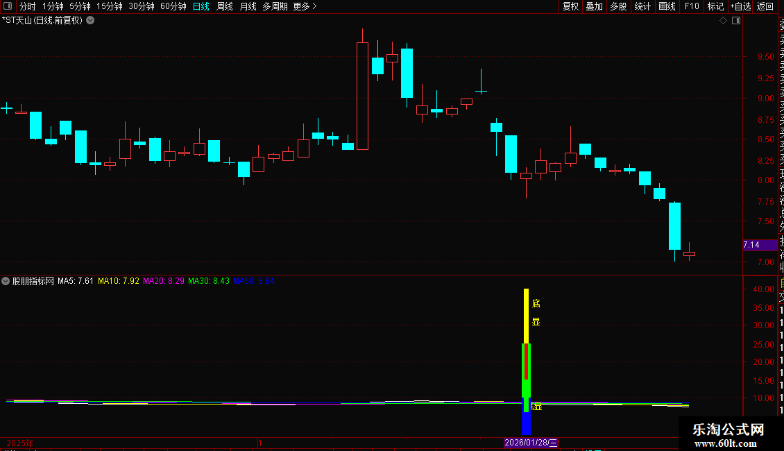 DRAWTEXT(FILTER(DX=1,5),36,' 底'),COLORYELLOW;