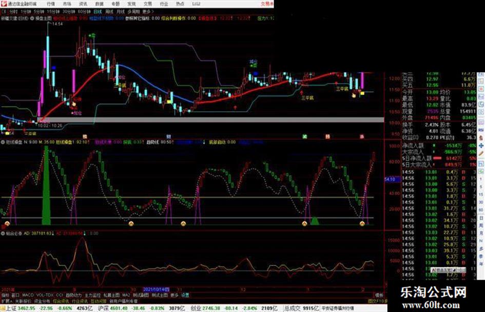 短线操盘1:IF(R6>0,R6,0),COLORYELLOW,POINTDOT;