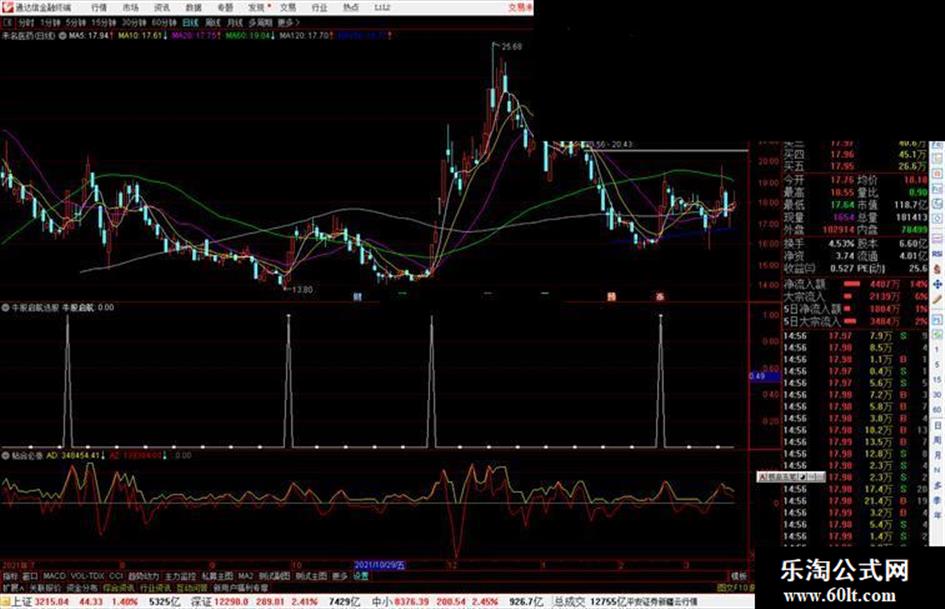 QB:="kdj.J"-REF("kdJ.J",1)>30 AND C/REF(C,1)>1.043 AND "macd.MacD">0 AND "MACD.DEA">0;