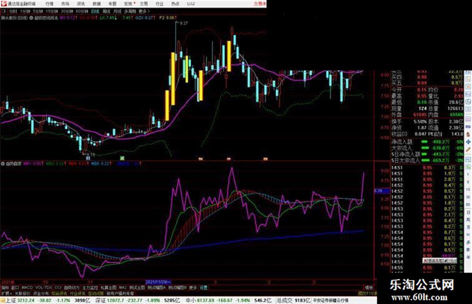 也是分三条线,紫线是个股强弱分界线,紫线向下走最好不参与,即使上涨,多数也是超跌反弹
