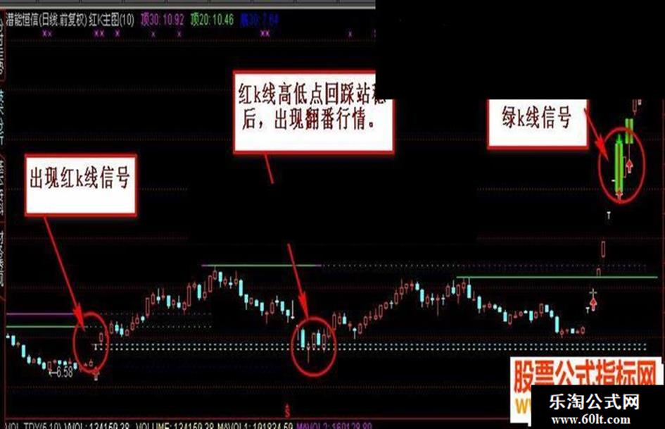 STICKLINE(绿K,CLOSE,OPEN,1,0),COLORRED;