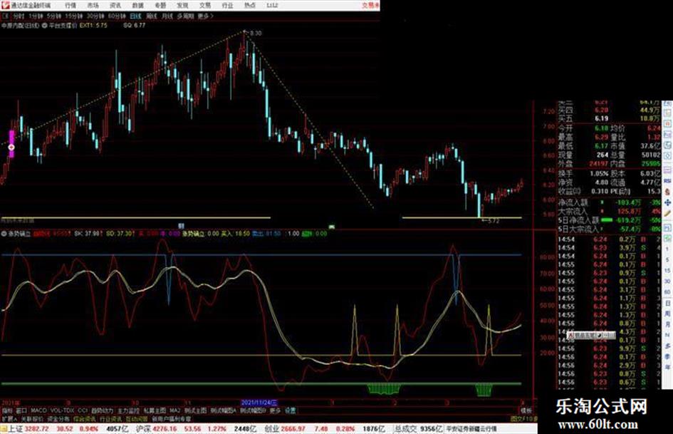 过峰1:STICKLINE( 过峰,C,O,5,0)COLORFF00FF;