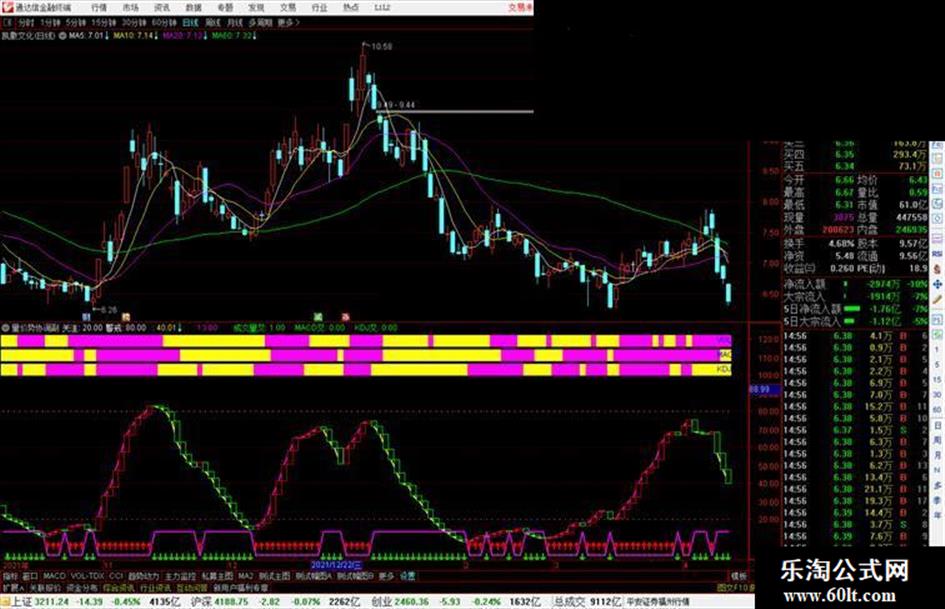 IF(趋势>=REF(趋势,1),0,13),COLORFF00FF,LINETHICK2;