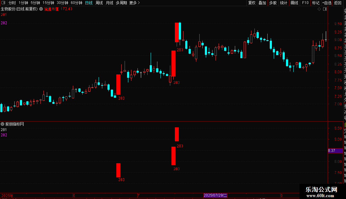 4. 数据输出:计算并输出股票的流通市值(单位:亿元),但不直接显示在图上。