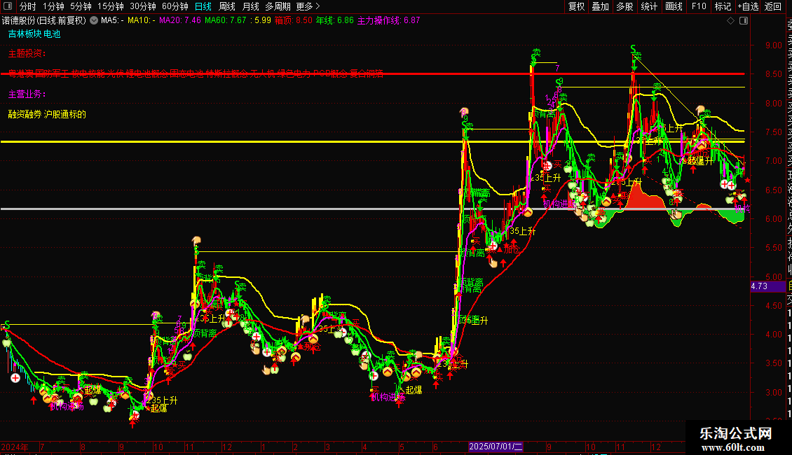 箱腰:IF(X_3>0 AND X_3-X_4<=0,X_7,X_7),DOTLINE,COLORYELLOW,LINETHICK3;