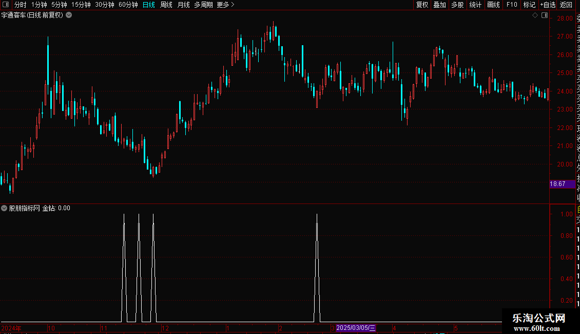 1. 当满足“金钻”条件时,指标会输出信号标记。