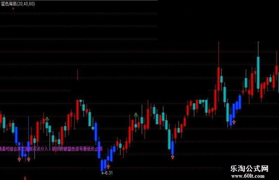 公式使用说明:蓝色k线消失收实体阳线是可结合其它指标买点介入,股价跌破蓝色信号最低价止损。