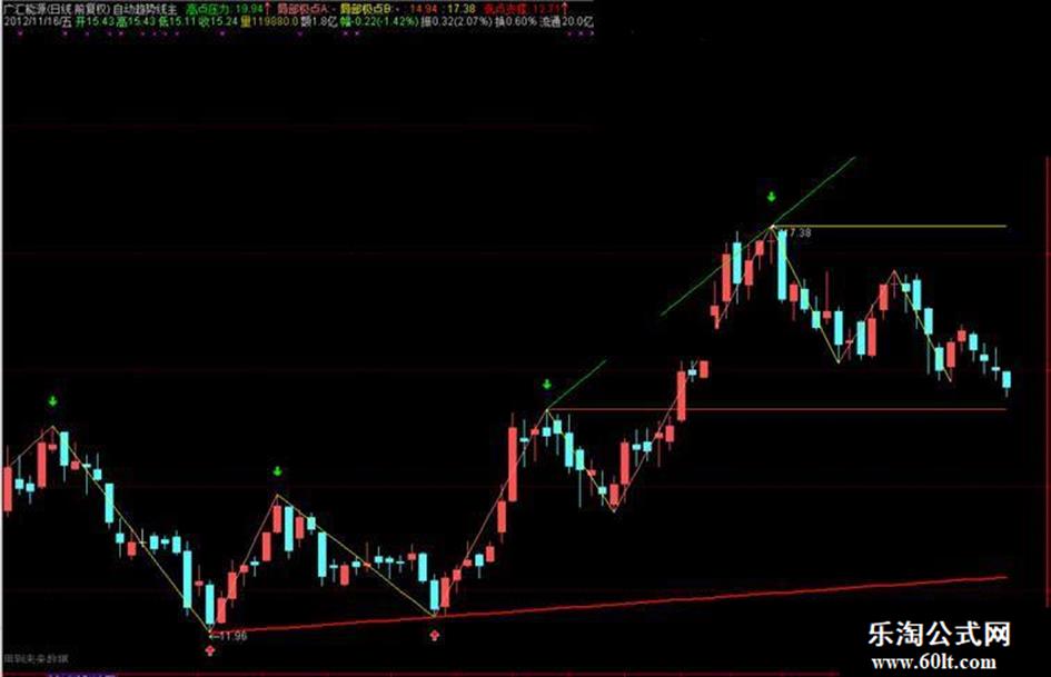 自动趋势线--就是根据过去已发生的高低点走势自动画线并能够告诉你目前的位置处在什么地方的一种主图,同时也能标出高点压力、低点支撑、局部极点,我介绍的这款自动趋势线主图与首富软件的指标不完全一样,但大同小异。
