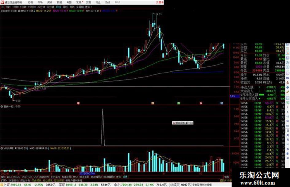 通达信【筹码主力监测】副图指标资金...