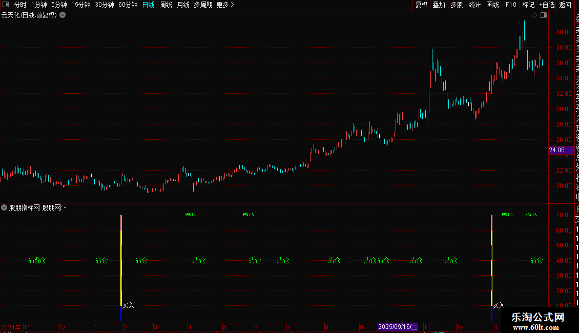 DRAWTEXT(CROSS(40,做多线),40,'清仓'),COLORGREEN;