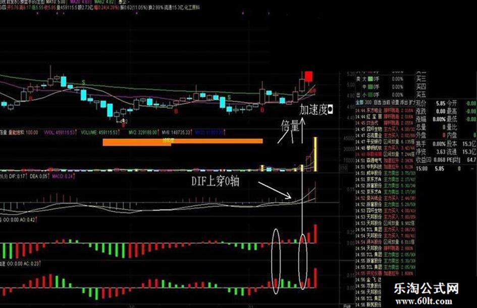 2、最新的柱线从上向下穿越零轴线时就产生了穿越卖出信号;