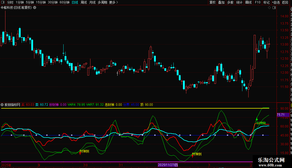 - 好财神:VAR2下穿80时提示卖出机会,标记“财神跑”。