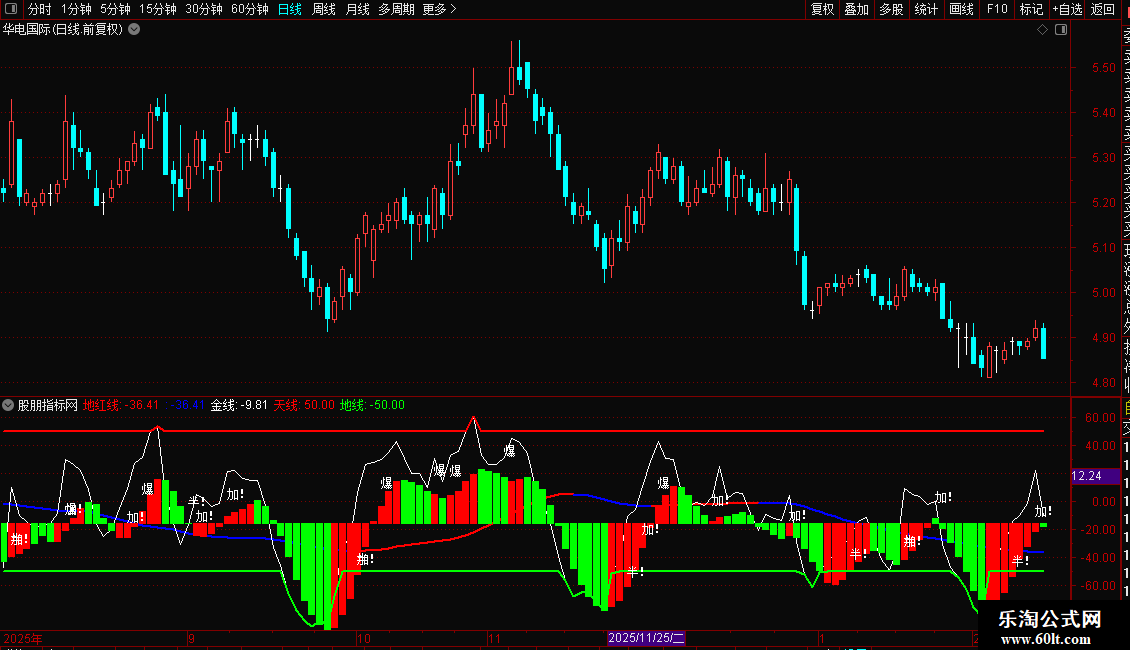 4. 文字提示:当金线向上穿越关键参考线(爆发线、起步线、抄底线)时,会显示“爆”、“加!”、“半!”等文字进行预警。