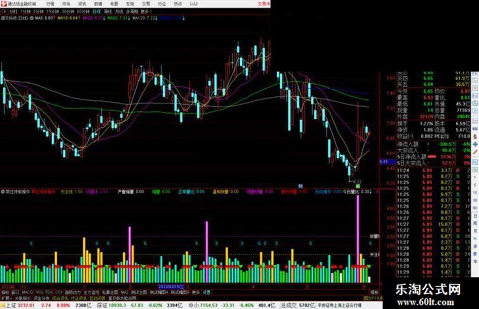 跟庄持股操作:IF(指导线 >6 ,2.99,1),LINETHICK1,COLOR0000FF;