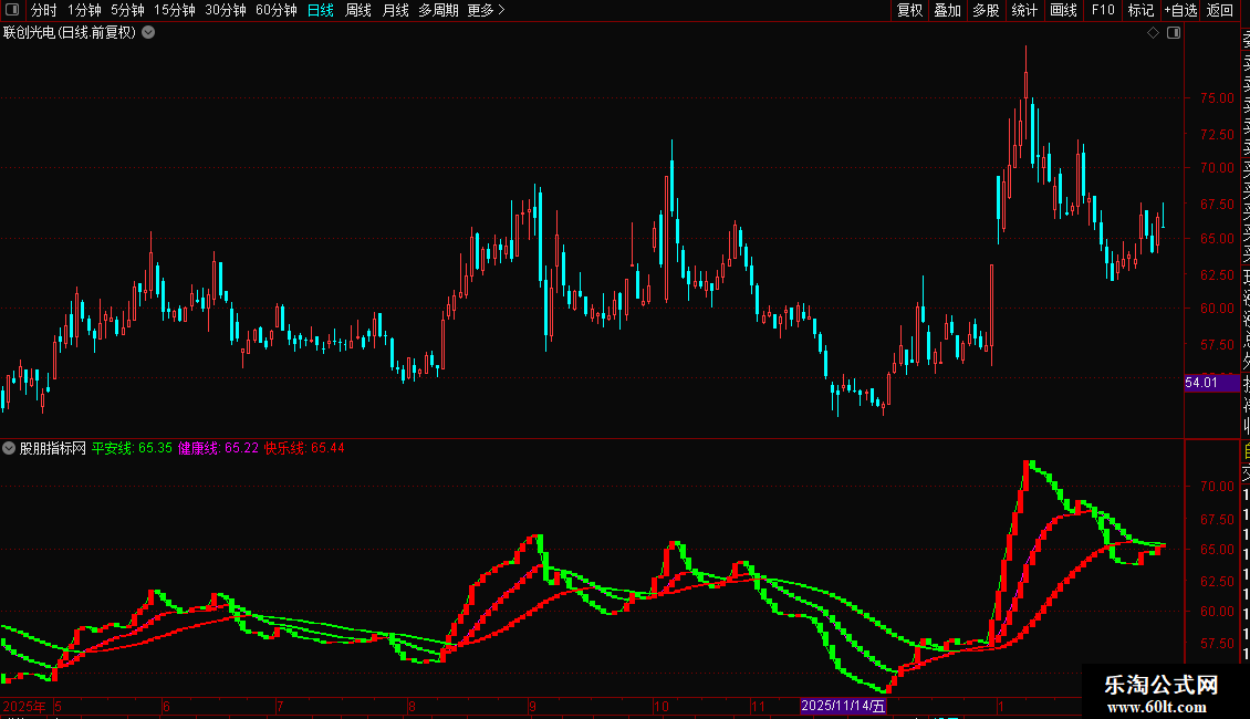 STICKLINE(快乐线<REF(快乐线,1),快乐线,REF(快乐线,1),3,0),COLOR00FF00;