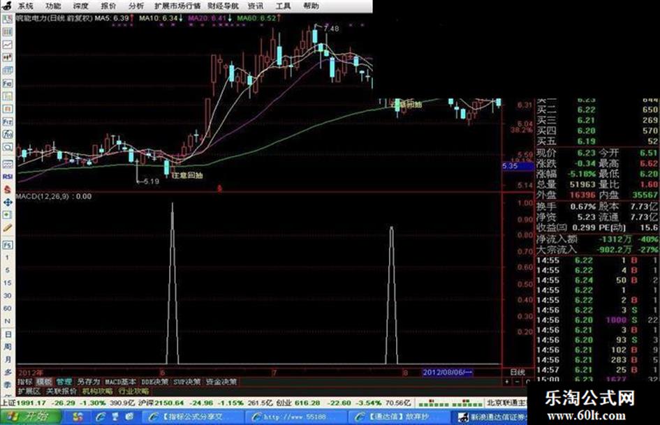 一般来说,MACD指标大家的用法差不多,金叉死叉,红柱绿柱,本人经过多日观察,发现一个很有意思的东西。做一个简单指标叫做“注意回抽”,大概翻了一些股,此指标成功的比例反倒不低,如果配合其它指标,比如KDJ、缩量等待,有时收获不菲。当然了,它不可能解决一切问题。