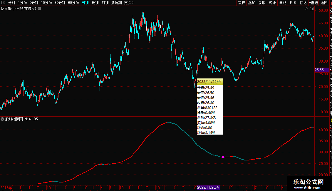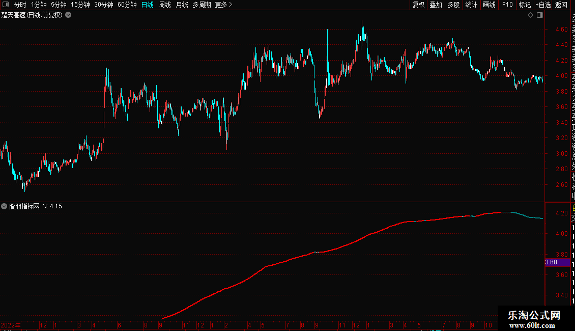 NOTEXTQ:IF(N>=REF(N,1),N,DRAWNULL)COLORRED LINETHICK2;{年线上行}