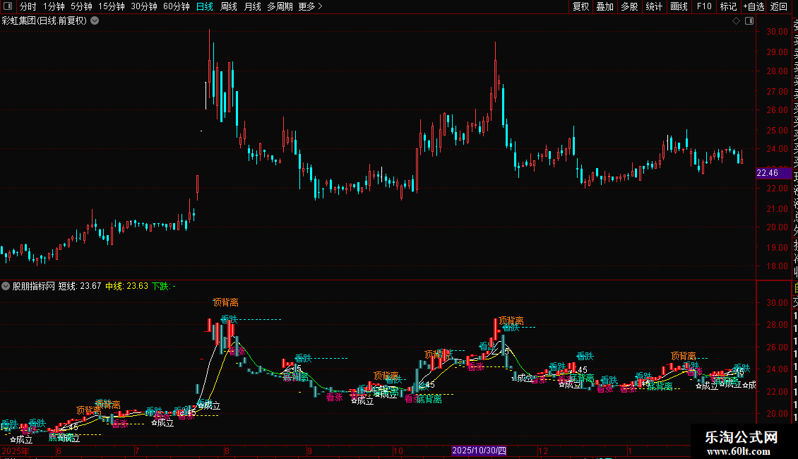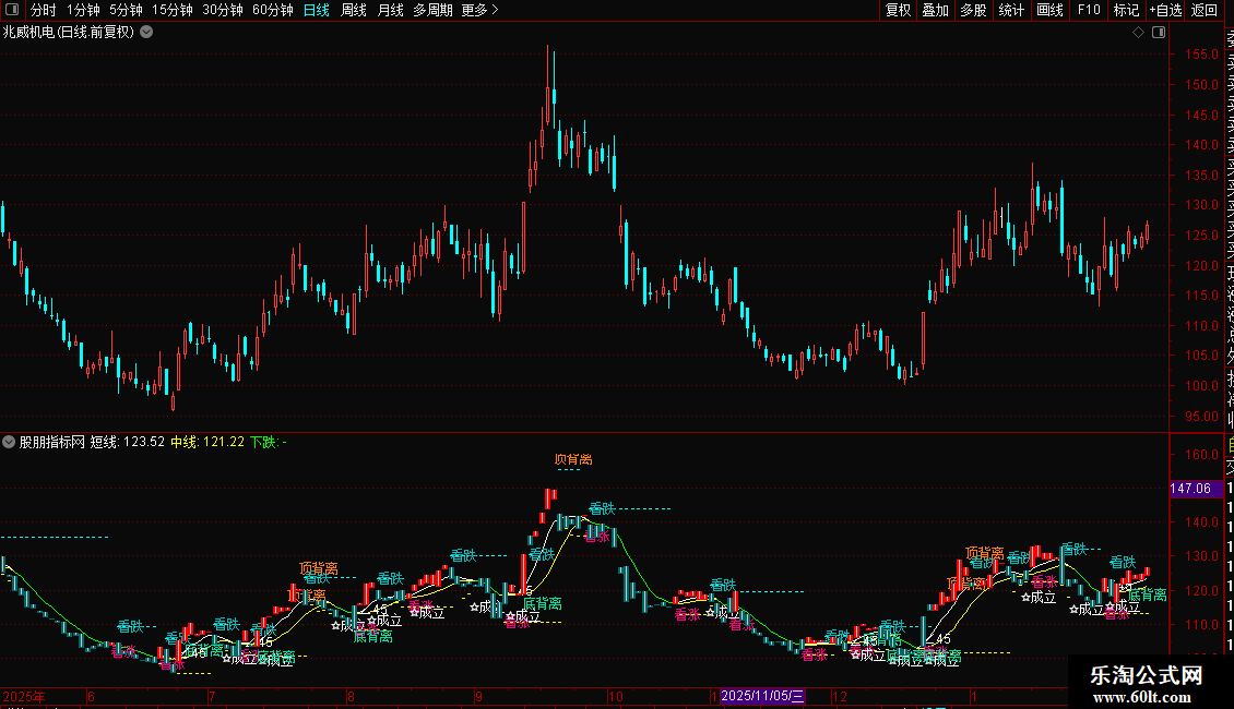 DRAWTEXT(CROSS(FF,MA15),BBF,'底背离'),COLORA6E500;
