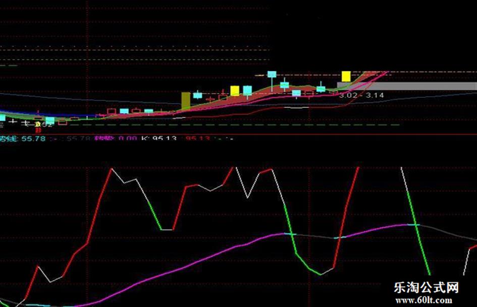转势:CROSS(趋势线,REF(趋势线,1)),NODRAW,COLORFF00FF;