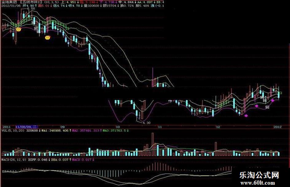 一品五线变布林,开合趋势真分明;突破上轨拉升快,回归中轨反弹轻。}