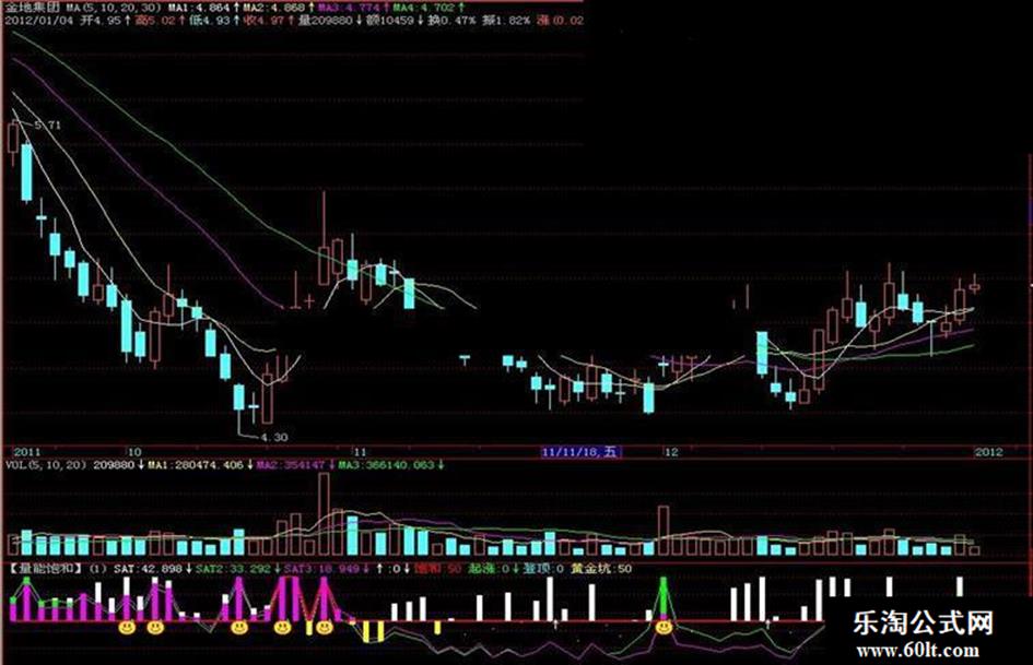 黄金坑:IF(COUNT(NOT(饱和=50),10) AND SAT<50,SAT,50),COLOR00FFFF,POINTDOT,LINETHICK0;