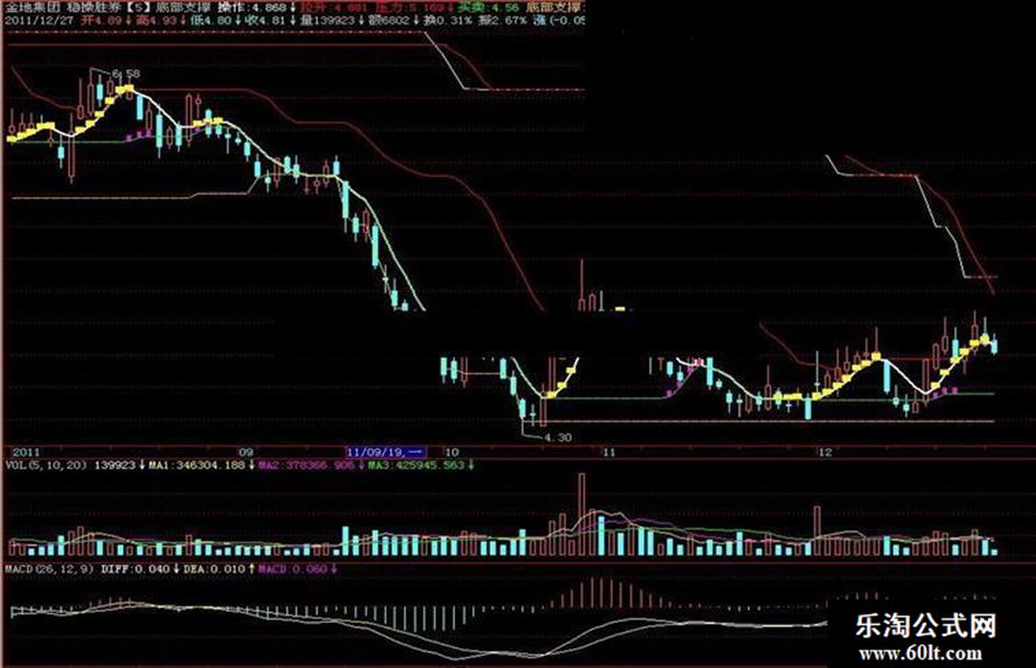 底部支撑:(LLV(LOW,60) * 1.02),colorCCFF;